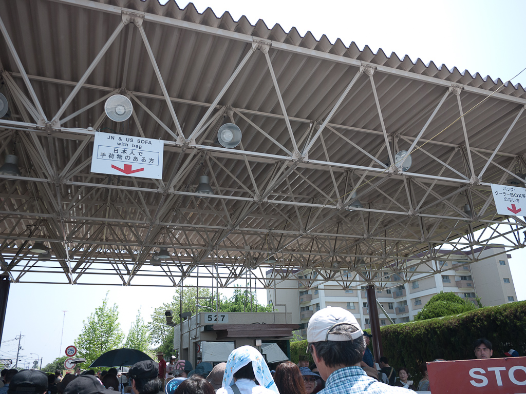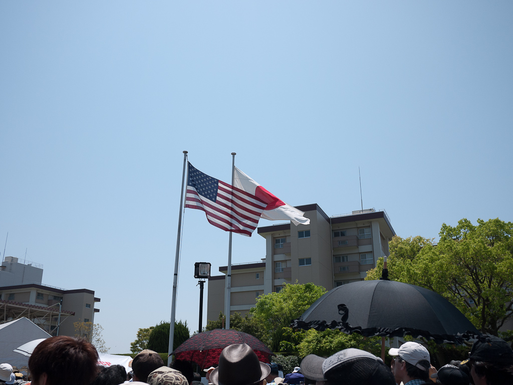 投稿日: 2012年5月5日2012年6月11日 投稿者: おフク米海兵隊岩国航空基地へ で、ようやく入り口。 日本とアメリカの国旗が並んで掲げられているのが印象的。 なんかどこまで撮っていいのか分からないのが恐い。。。 変な物撮っちゃったら捕まりそう>< この辺りで身分証やら持ち物チェックが行われている。 荷物だらけだったから不安だったけど、カバンを空けてちらっと見せたらOK(笑) ゲートを通って… や~~っと入れた~~~!!!! 午前11:30 朝5時ぐらいから車に徒歩にと並び続けて6時間半でやっと入場!! 何度か帰ろうかと、本気で思った(笑) ページ: 1 2 3