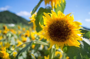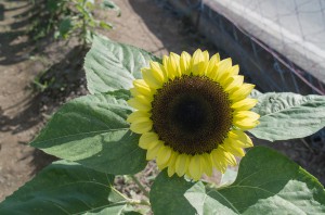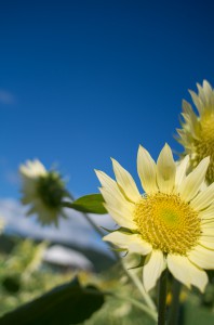 これは黄色がちょっと薄目で小ぶりなひまわり。