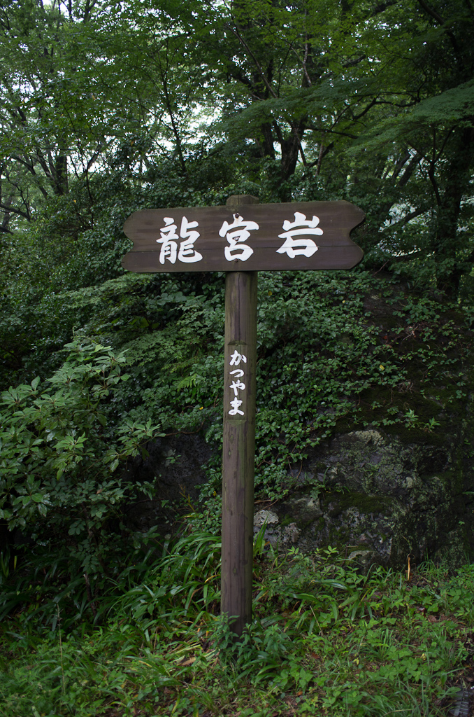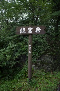 森の中に看板立ってるけど、ここが龍宮岩では無い。