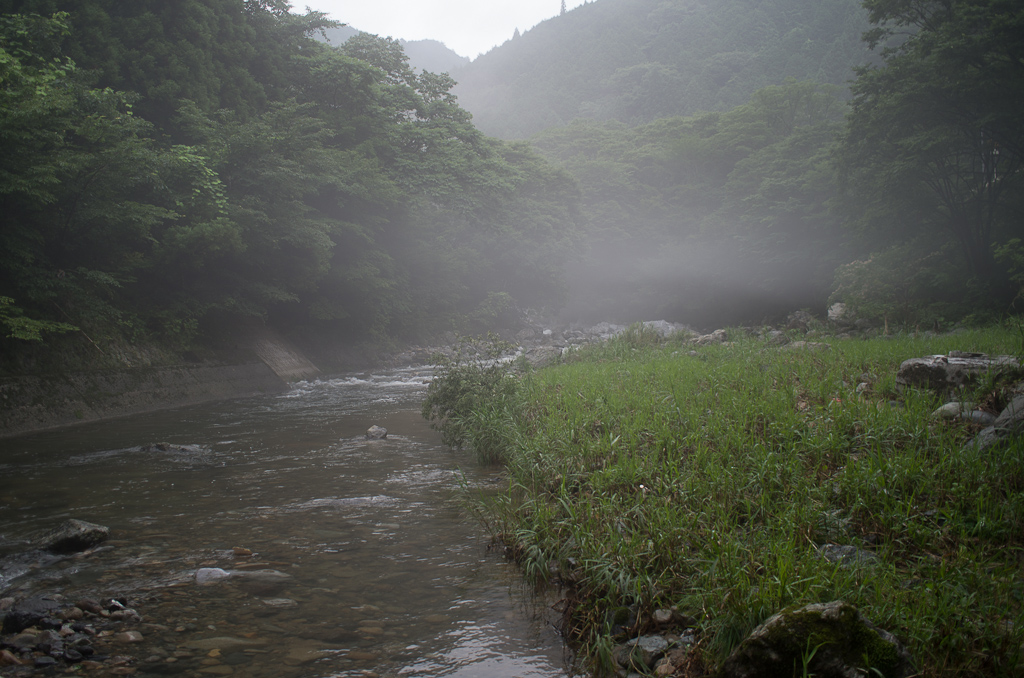 この辺り、川の上に霧というかモヤというか、なんか白っぽい物が。