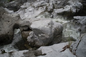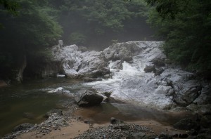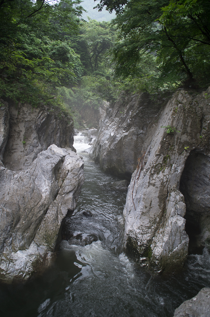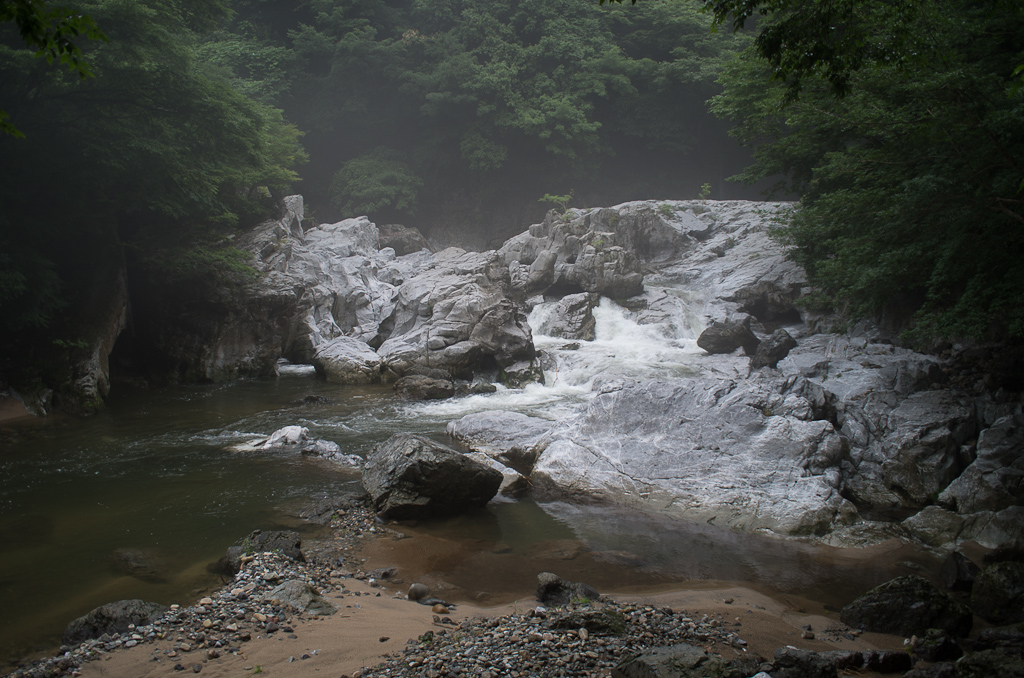 岩が白すぎて、水と同化しておる…。