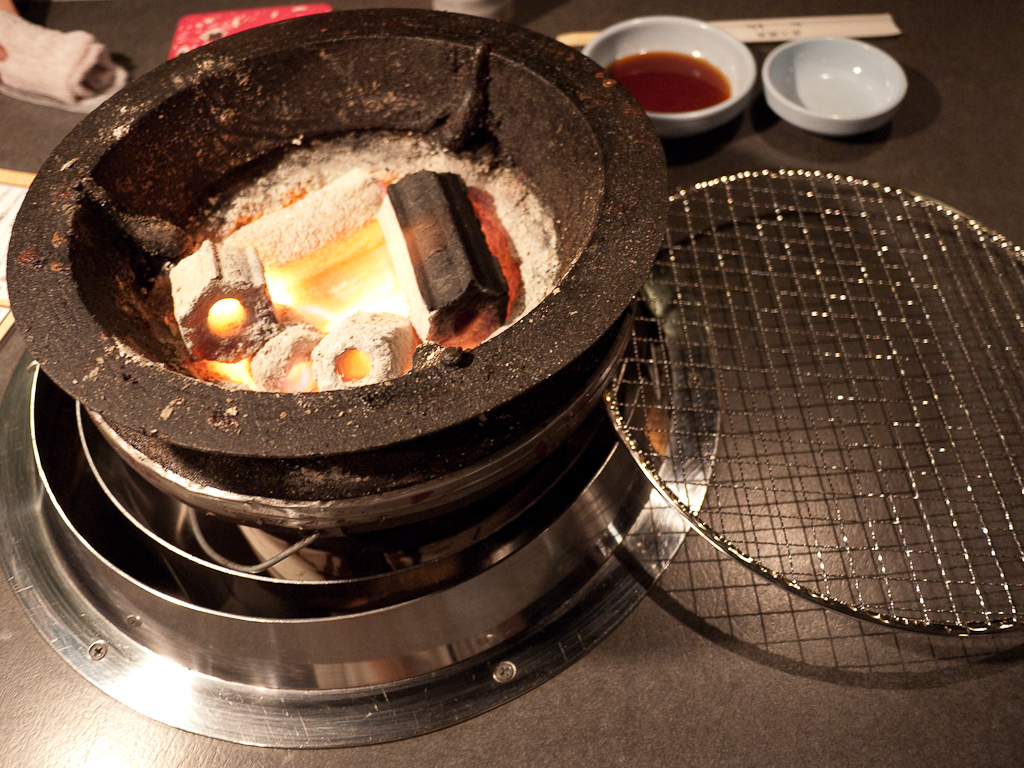 ここは鉄板じゃなくて、七輪で焼くお店。