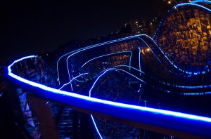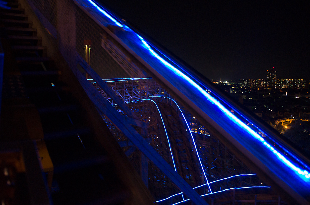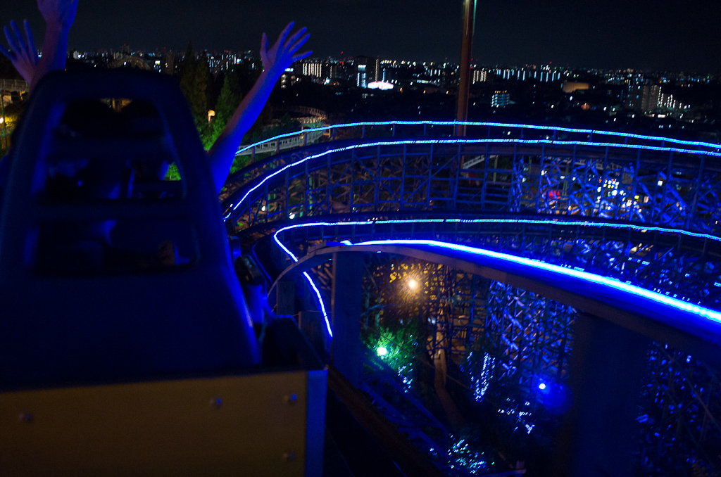 投稿日: 2012年8月25日2012年8月30日 投稿者: おフクサマーナイトひらパー 閉園まで1時間ぐらいしかないので、ちょっと駆け足で回る。 まず最初に行ったのは… スターライトエルフ、木製のジェットコースターなのだ。 うん、これぐらいなら余裕、余裕。 コースが青いイルミネーションで照らされて綺麗!! がっこんがっこん上って行くよ~。 あ、やばい、ドキドキしてきた。 ひゃほーい!! 侮っていたけど、結構Gが凄い。 下から眺めるのと、実際に乗るのでは大違い!! 上下左右振り回されて ちょっと酔った。 多分、液晶ばっかり見てたからじゃないかな…。 ページ: 1 2 3