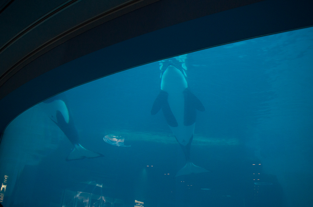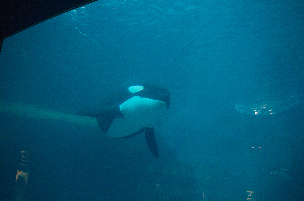 水族館を入ってすぐに、シャチやイルカなど海獣の水槽がある。
