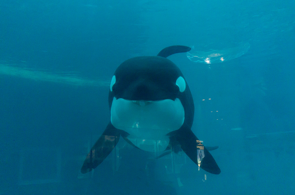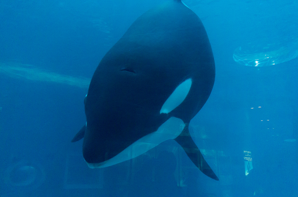 早速、シャチの水槽を覗いてみると…