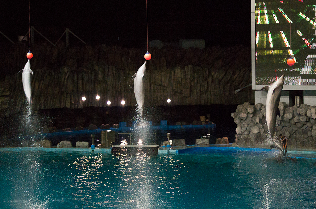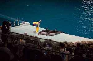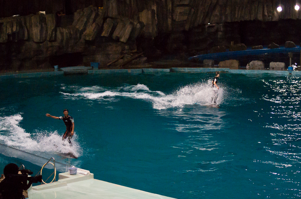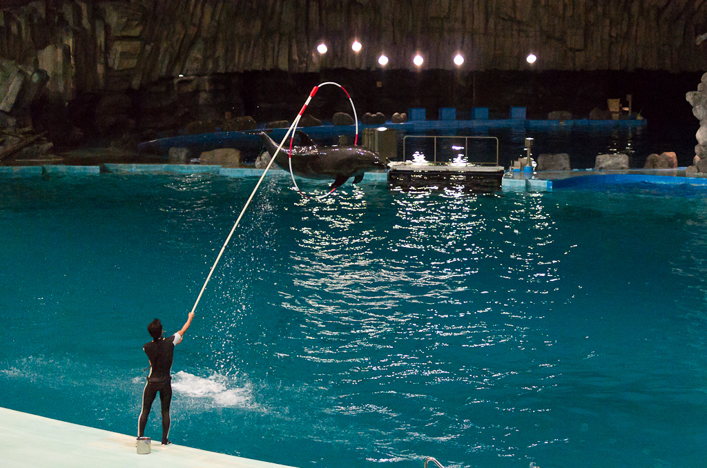 イルカに乗った少年て昔あったけど、この乗り方は想定してないだろうな(笑)