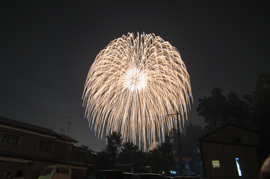 このぐらいの近さだと、尺玉が上がったときの衝撃は結構凄い。
