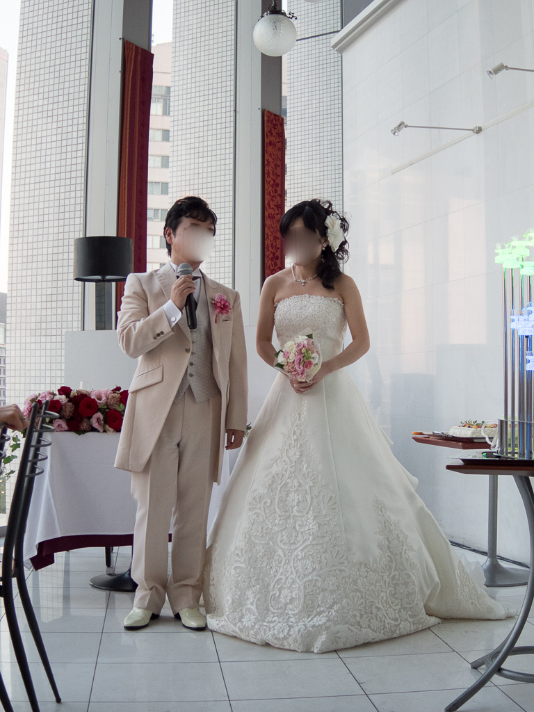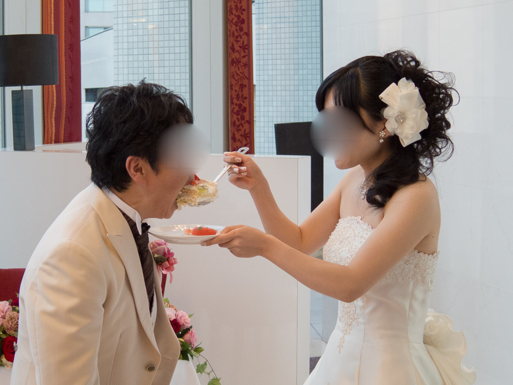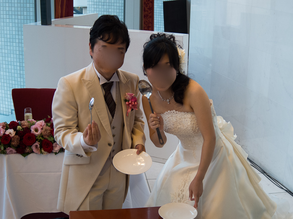 投稿日: 2012年10月20日2012年10月31日 投稿者: おフクおめでとうの宴 2 続いて… 新郎のからのご挨拶。 しっかりしてる方だったけど、やっぱり、挨拶もしっかりしてるなぁ…。 続いてケーキカット。 撮影用にしばしそのまま! いろんな方向から声を掛けられる二人。 で、切った後はお約束のアレですよね~ スプーンを構えるけれど、 ( ゚д゚) (つд⊂)ゴシゴシ (;゚д゚) スプーン…目の錯覚!? まずは新婦がいただきます。 うん、一口サイズ。 続いて新郎。 って、それゃ無理でしょ!!(笑) ほのぼの楽しそうな夫婦のやり取りを見せてもらってほっこり。 ページ: 1 2 3 4 5
