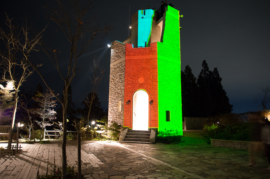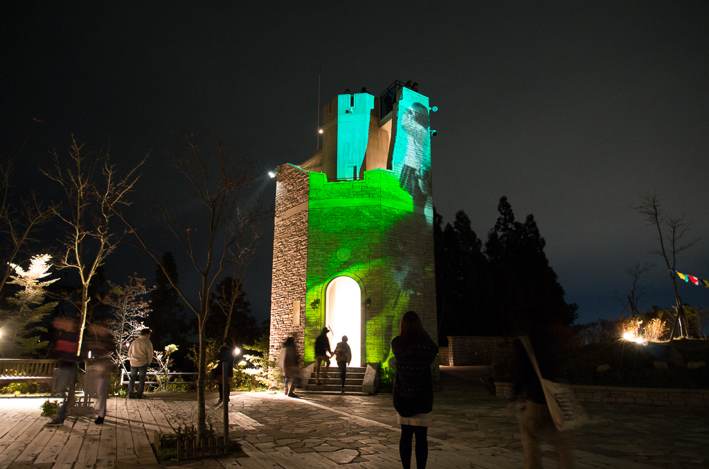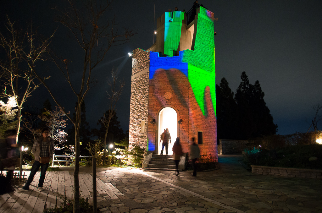 投稿日: 2012年11月4日2012年11月20日 投稿者: おフク六甲ミーツ・アート 2012 その5 気がつくと… 辺りはすっかりまっくらくらすけ!! さっきの塔を見てみると… なんか描かれてる!! 実はここ、夜の作品が現れるのだ!! 最近流行のプロジェクションマッピング。 まるで最初からそんな色だったかのように見える。 ちょくちょく色が変わるんだけど… 手で貼り換えてるのだ(笑) 面白い見せ方だなぁ…。 塔も上ってみると… おお、良き眺め!! 風が拭いててメチャ寒いけど!! 園内も一望できてよきかな、よきかな。 ページ: 1 2 3 4