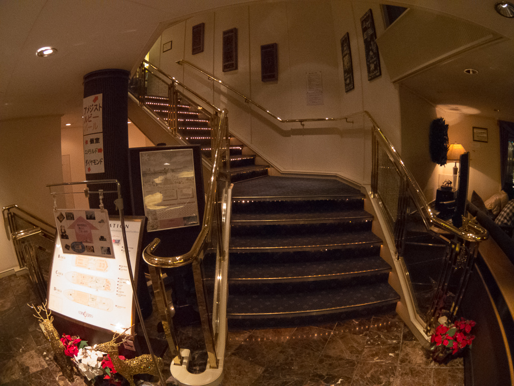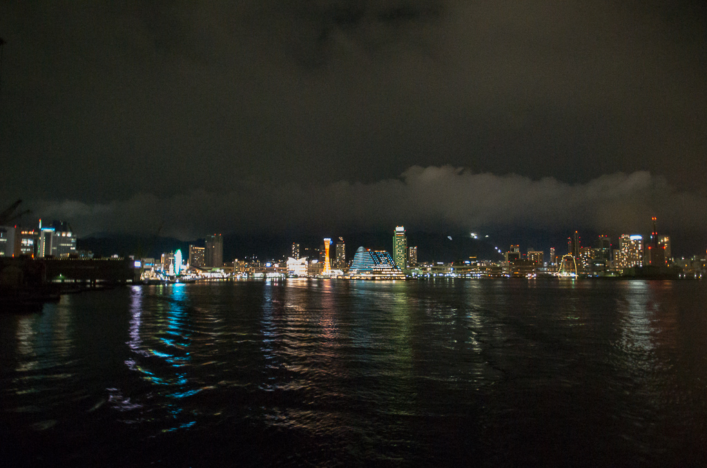 投稿日: 2012年11月17日2012年11月27日 投稿者: おフク夜の神戸 2 それでは… 行ってきます!! 今日のコースはお料理+ワンドリンク、それにこの船の乗船券付き! 乗船時間は1時間半ぐらいのコース。 それでいて、お値段は…やたらリーズナブルなのだ! お食事付きのコースではないので、レストランゾーンは立ち入り禁止。 案外、行動範囲は狭い。 探検大好きおフクにはちょっと物足りない。 基本的にはここのロビーと… 階段上っての… デッキが移動できる範囲。 って言ってる間にどんどんハーバーランドが離れていくよー! 雨はすっかり上がっていたけれど、椅子は濡れてるから座りにくい…。 ページ: 1 2 3 4 5