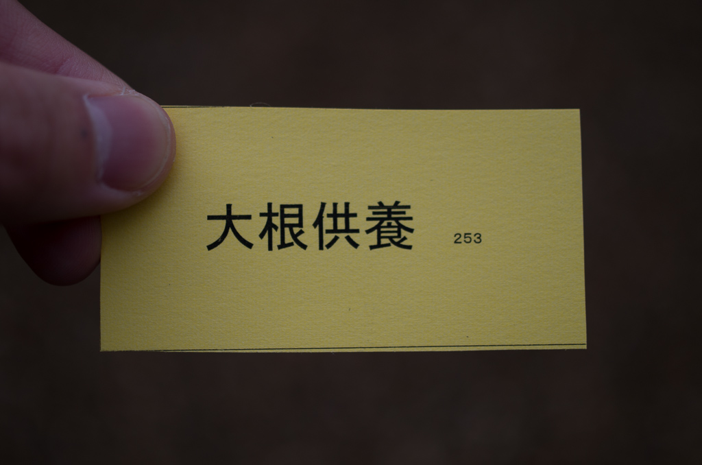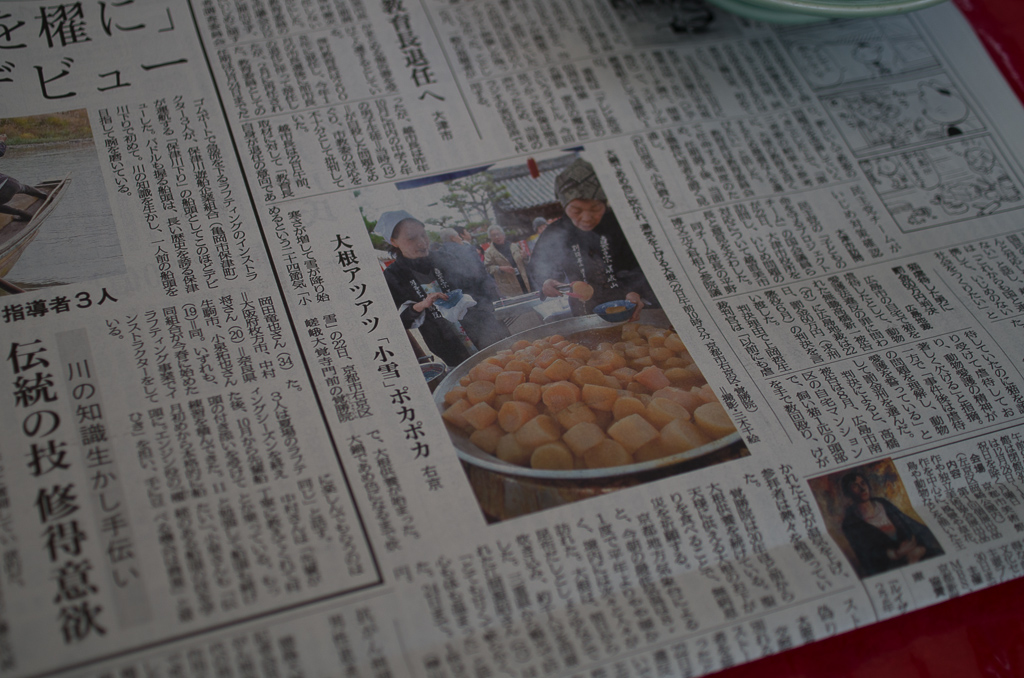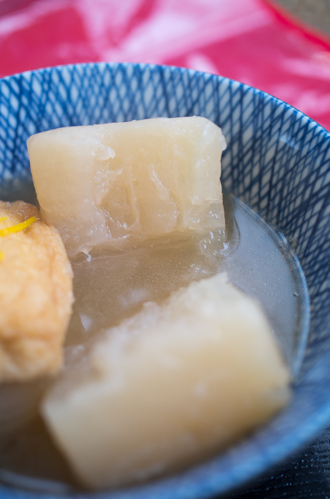投稿日: 2012年11月23日2012年12月5日 投稿者: おフク嵐山への小旅行 その1 すっかり大根のテンション(?)だったおフク。 そりゃ買うだろう? 大きな鍋から、大根二つ。 こっちは味付きで煮込まれてる!! たかが大根となめてると、結構なボリュームなんだけど…(笑) じっくりと煮込まれてるから、すんごい柔らかい。 そして味付けも実にナイス。 新聞記事にもなってたみたい。 全然知らなかったぞー!! ふと見ると、大根が供養されていた。 美味しい大根さん、ありがとう!! こうやって供えられた大根が煮込まれてるのかな? 紅葉も綺麗! しばし庭の紅葉も楽しんで、いざ目的地へ!! ページ: 1 2 3 4