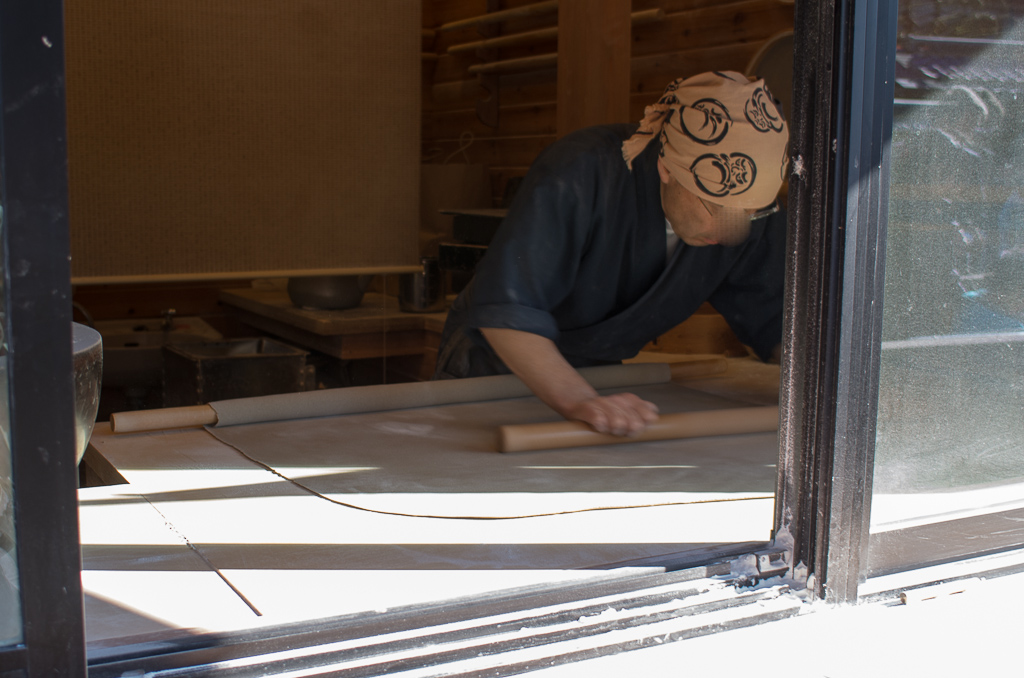 お蕎麦は各お店でちゃんと打ってるので、こんな光景も見られる。