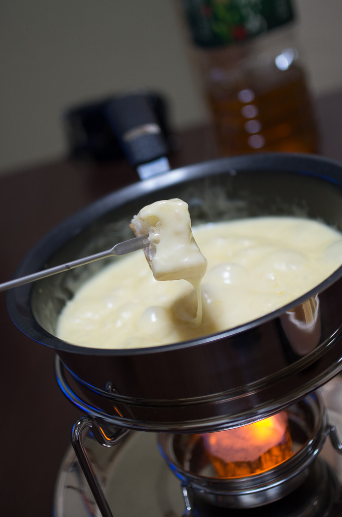 今日はクリスマスパーティーの時に余ったチーズで、フォンデュを。