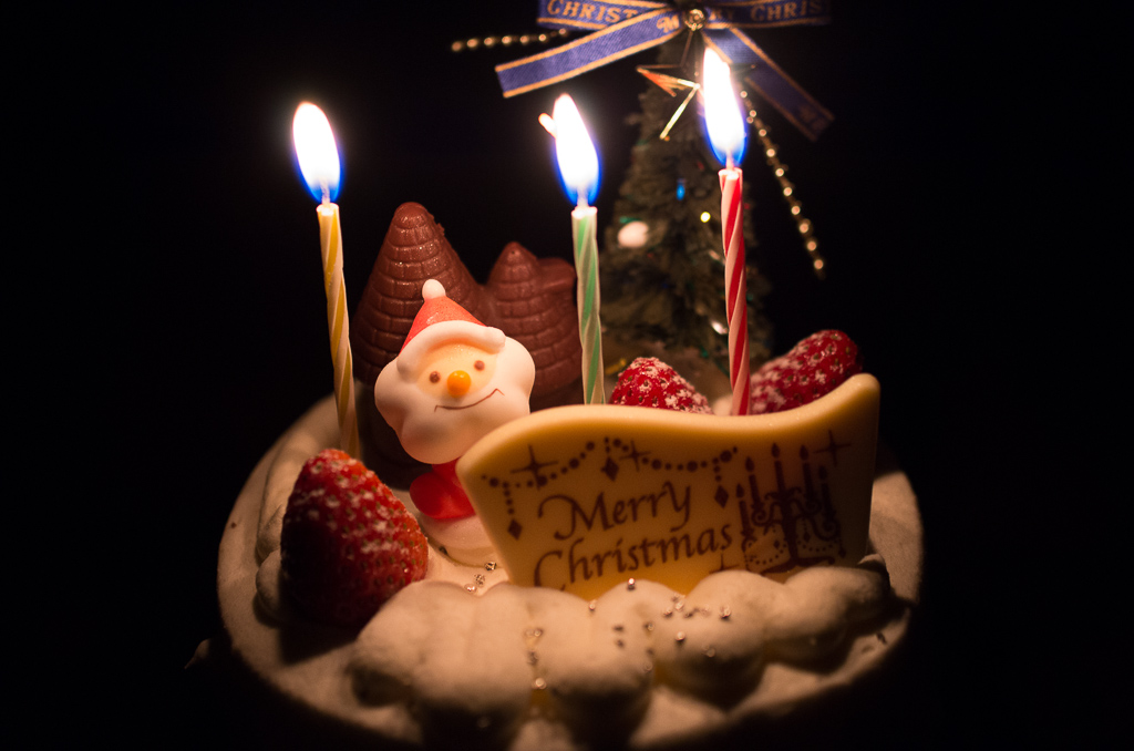 ちっさいケーキを買って、すっかりクリスマス気分。
