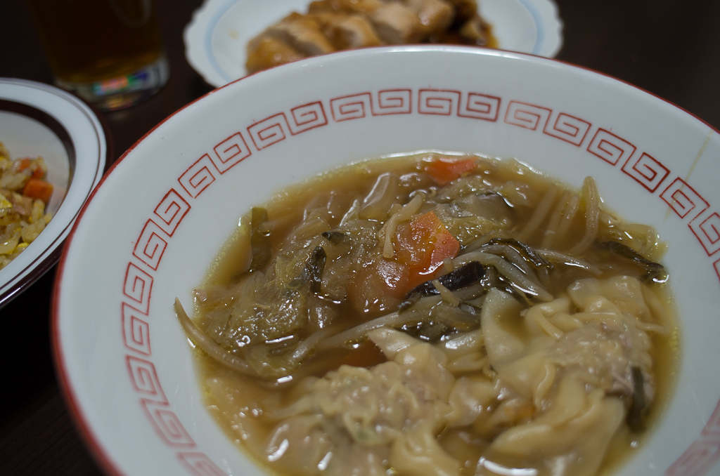 中のワンタン作りは、肉が冷たかったけど、案外楽しい。