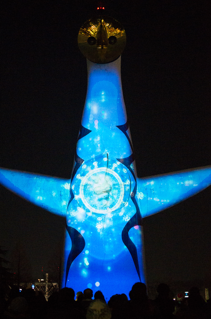 太陽の塔に投影する、プロジェクションマッピングの最終日!!