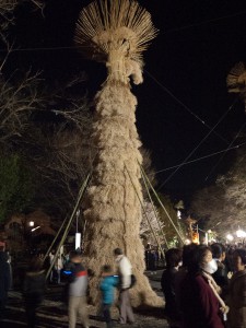 火が点いた松明を引きずり、お宮まで持って行く。