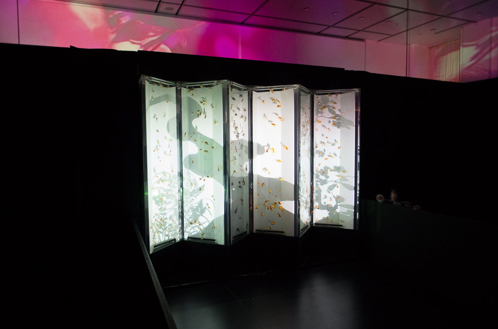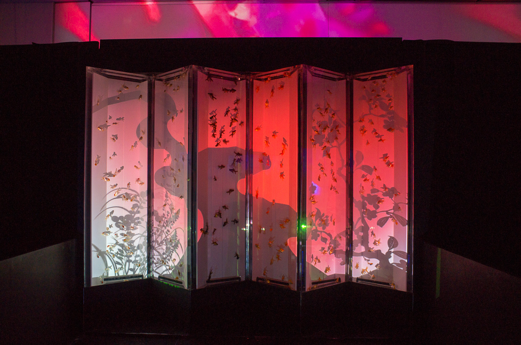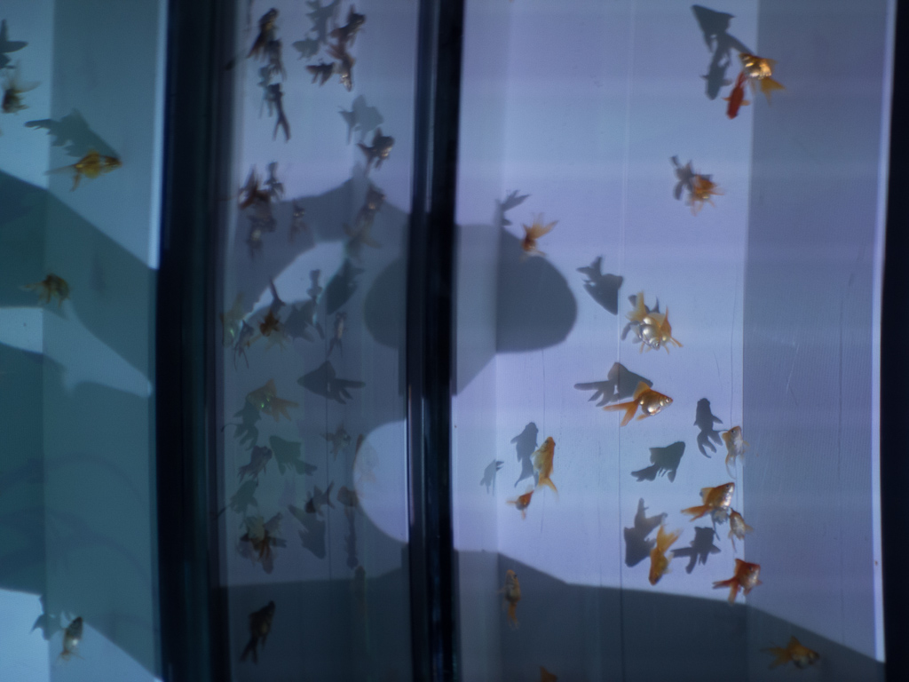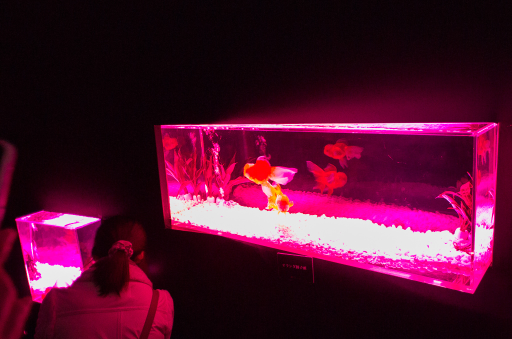 投稿日: 2013年1月20日2013年3月7日 投稿者: おフクアートアクアリウム行ってきた! 中へ入ると、、、 こんな風に水槽が並んでる。 中には当然、金魚。 入り口付近は写真を撮ってる人たちが動かないもんだから、大渋滞。 だけど、ちょっと中に入るとスッカスカ! なのでのんびり こんな金魚ちゃんや、 こんな金魚ちゃんを撮り放題!! … … …って、このぐらいなら、ペットショップでも見られるんだよね…。 ここに来たからには、やっぱりアートが見たい!! …ということで、ズンズン進んでいくと 屏風が! よくよく見ると、中には金魚! これはまさに生きたアート! 色や映し出される影も変わって、見てても飽きない。 ページ: 1 2 3 4