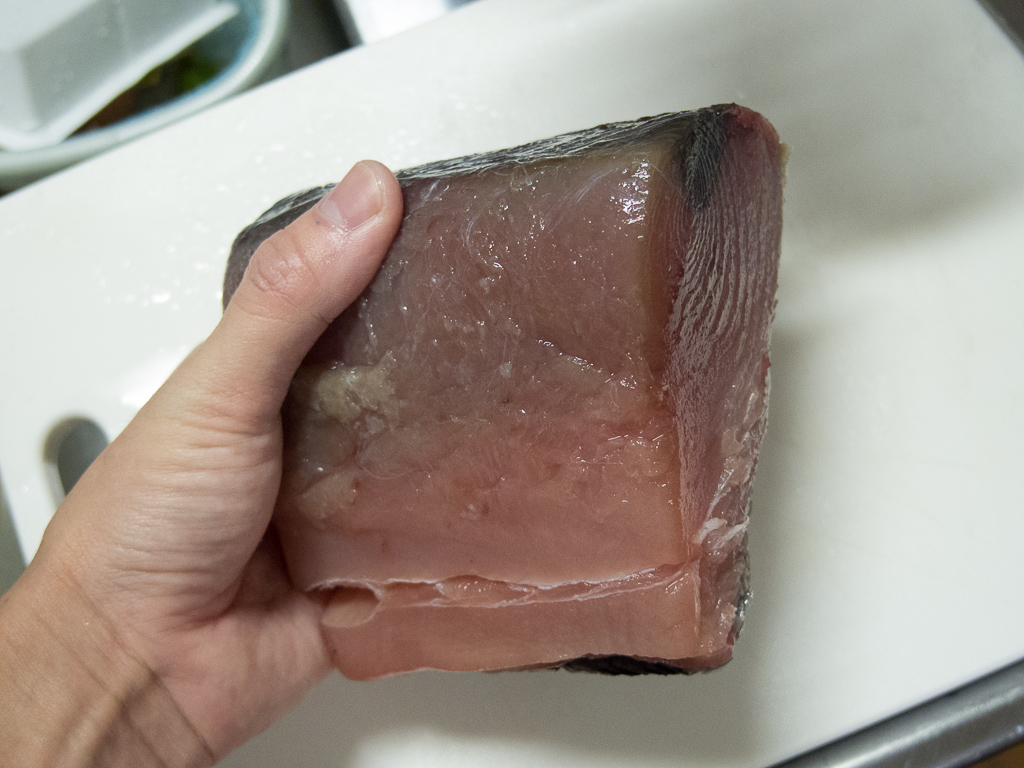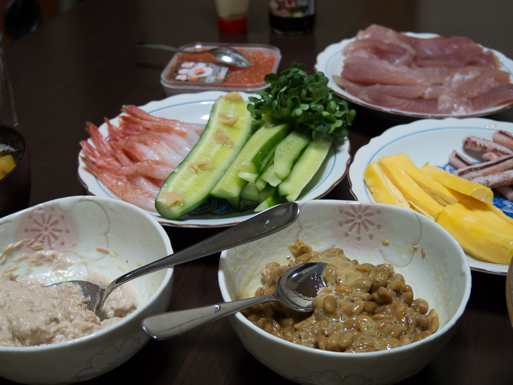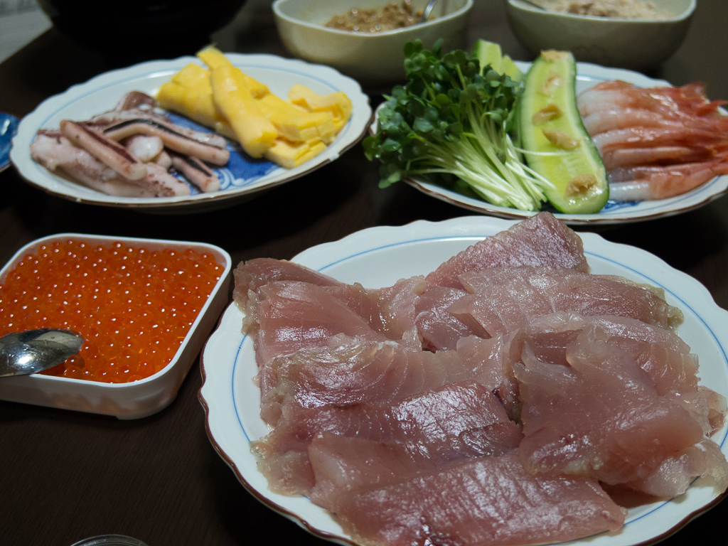 頑張って切ったマグロと、その他食材。