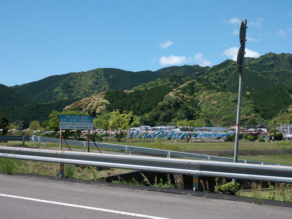 時期が時期だけに、鯉のぼりの大群も見えてくる。