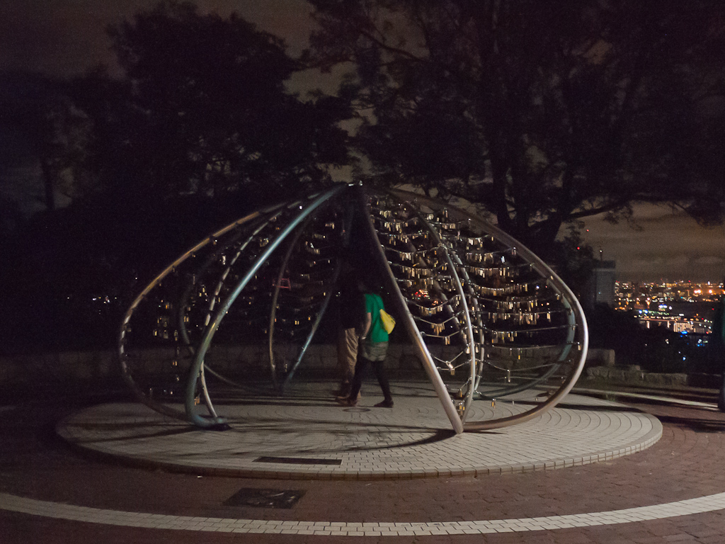 恋人同士、愛を誓って鍵をかけるモニュメントも健在。